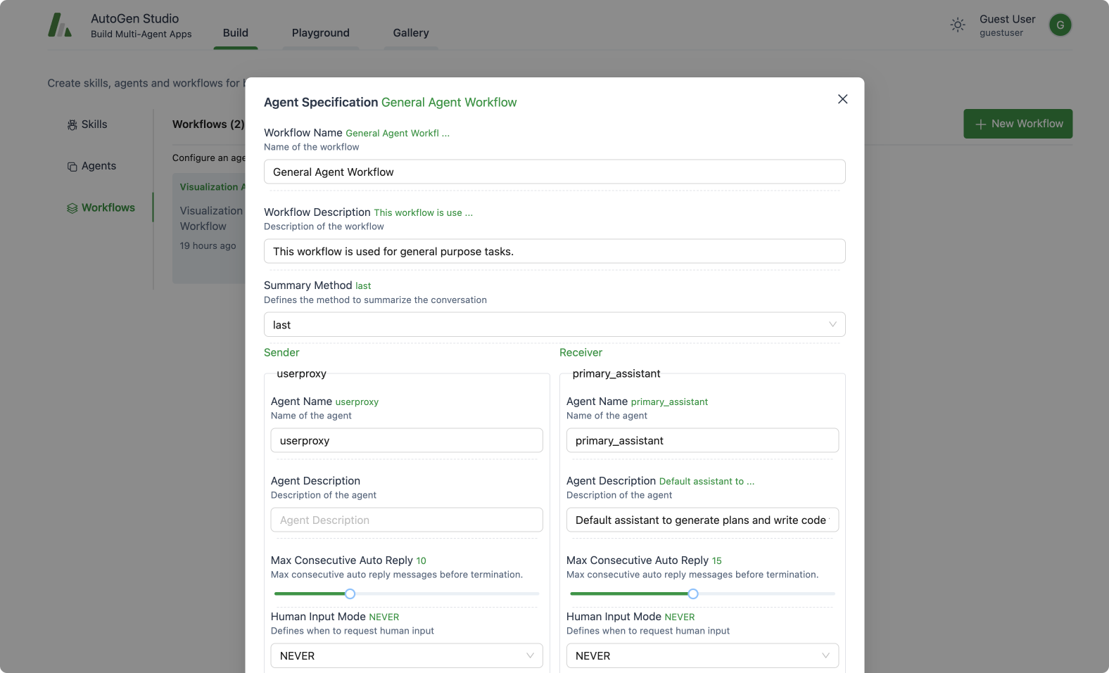 Note: AutoGen Studio is meant to help you rapidly prototype multi-agent workflows and demonstrate an example of end user interfaces built with AutoGen. It is not meant to be a production-ready app.